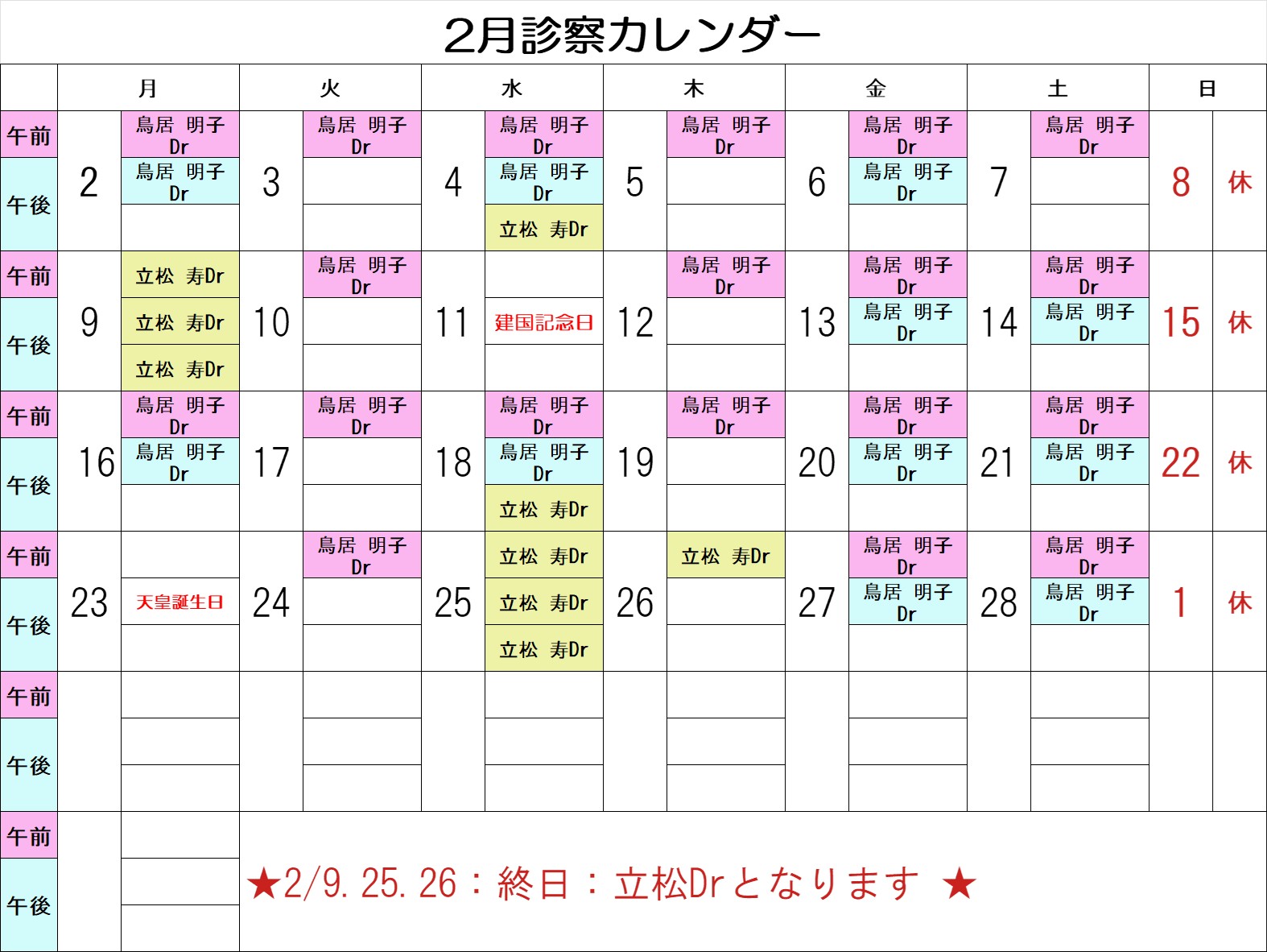 ※都合により診療時間を予告なく変更することがあります。ご了承願います。
